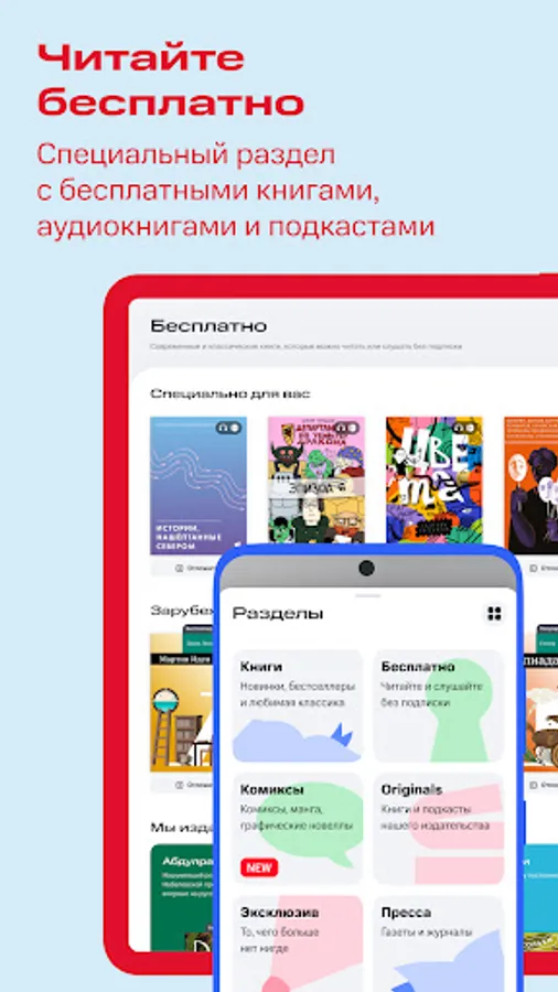 Original content is books, audiobooks, podcasts, which have been prepared by the Lines service from and to. Unique works that you will not find anywhere else, only with us. Exclusives are works, novelties and bestsellers by popular Russian and foreign authors, which are available only here and nowhere else.