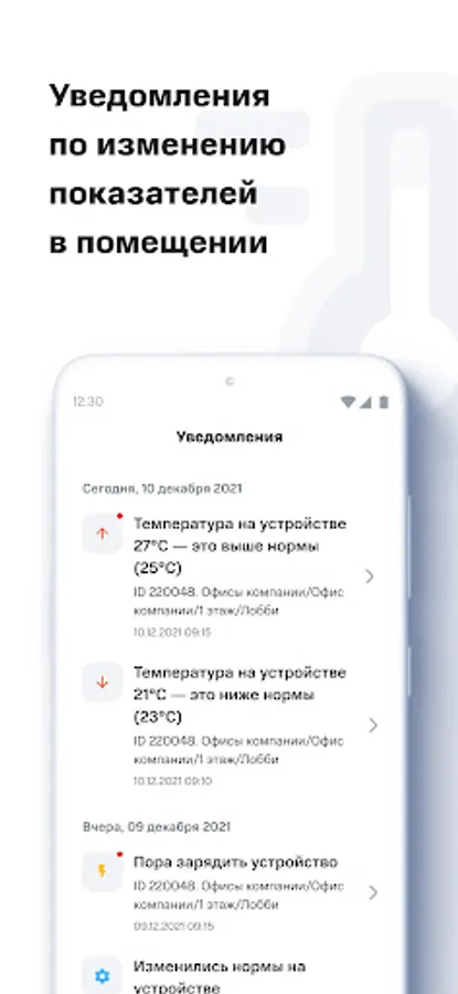 The Celsium application works in tandem with a wireless sensor or a group of sensors installed in the room. Celsium visualizes the data and notifies if the indicators are below or above the specified rate.