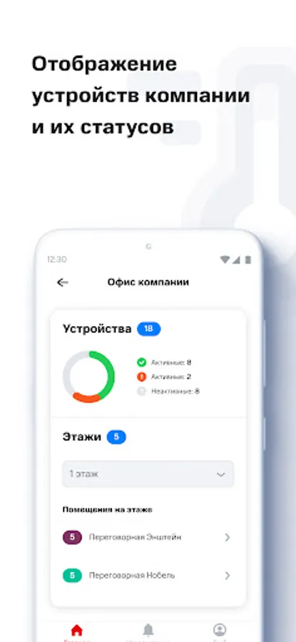 The Celsium application displays a list of connected rooms on the map, a list of all devices and their technical parameters, and microclimate indicators for each of them.