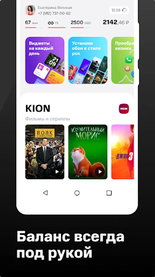 MTS ServicesSwipe right on the main screen for quick access to KION, Music and games.