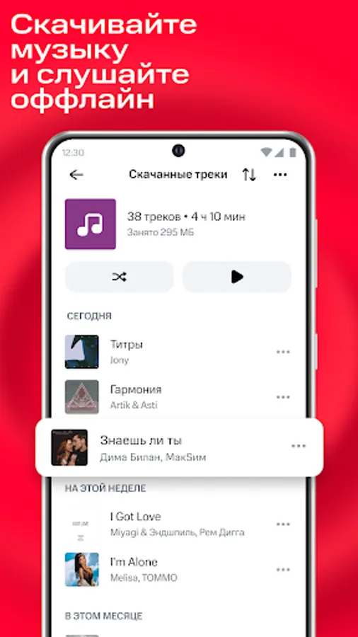 Your music will always be with you. Listen online when there is Internet, with a nice bonus for MTS subscribers - free Internet traffic for listening. Listen offline to your favorite songs by downloading them in the app. This will come in handy on the road, abroad, or when the Internet connection is unstable. You will not be left without music under any circumstances!