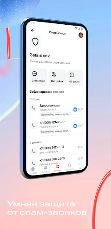 - Set up protection against spam calls Connect the MTS Defender service - it blocks spam calls, and you do not waste your time on dubious calls. Select "Defender" in the "Catalog" section, connect and set the rules for the anti-spam service. You will be able to edit the list of numbers, read transcripts of blocked calls and manage notifications about them. A free caller ID is also available for Zashchitnik users. Caller ID will show which organization you are calling from and the level of security according to our data from Big Data.