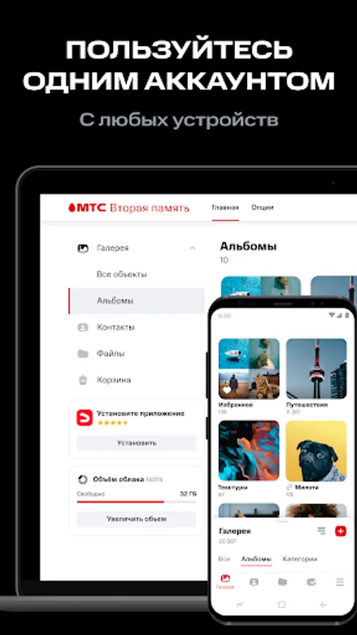 Service Second Memory from MTS is a reliable cloud storage for your files. Boost your phone's storage to keep photos, videos, music and documents close at hand. Securely share files with colleagues, friends and family, keep backup copies of your data in the cloud so you don't lose anything.