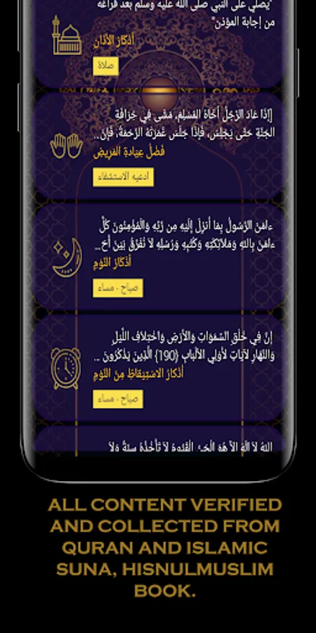 • All content verified and collected from Quran and Islamic Suna, Hisnulmuslim book.