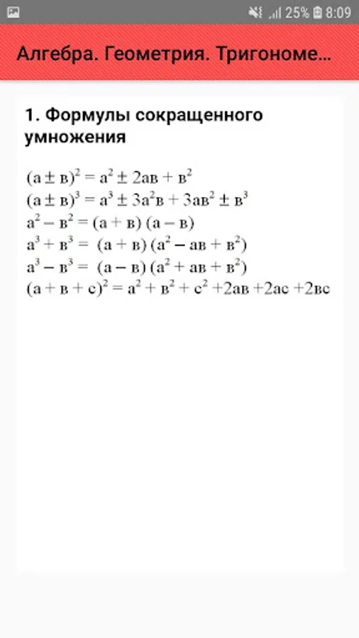 Collection of formulas in mathematics (pocket guide). The reference book contains all the necessary formulas of the school course in mathematics.