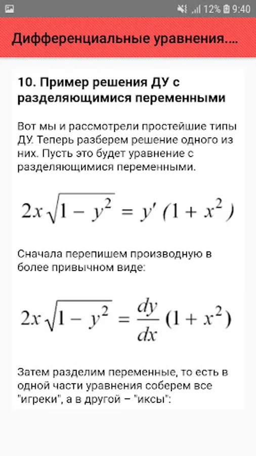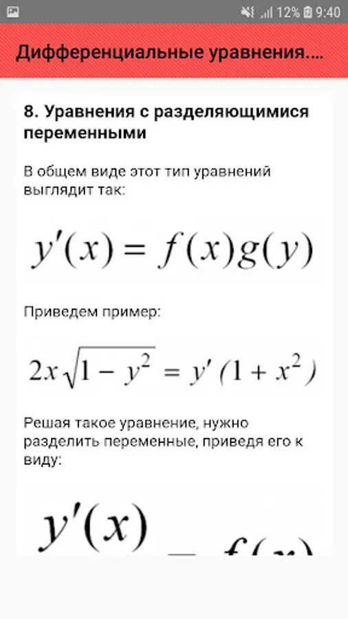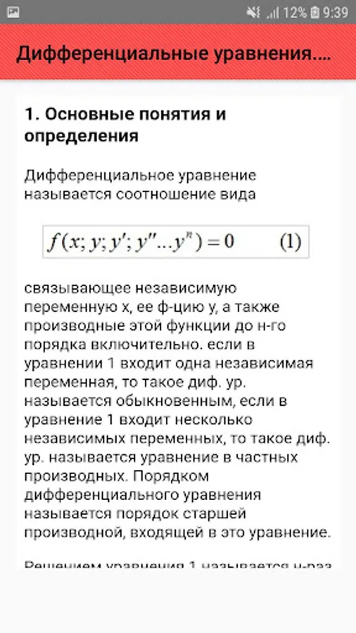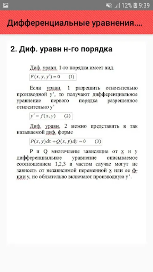 A differential equation is an equation in which derived functions enter, and the function itself, an independent variable, and parameters can enter. The order of derivatives in the equation can be different (formally it is not limited by anything). Derivatives, functions, independent variables and parameters may enter the equation in various combinations or may be absent altogether, except at least one derivative. Not every equation containing derivatives of an unknown function is a differential equation.