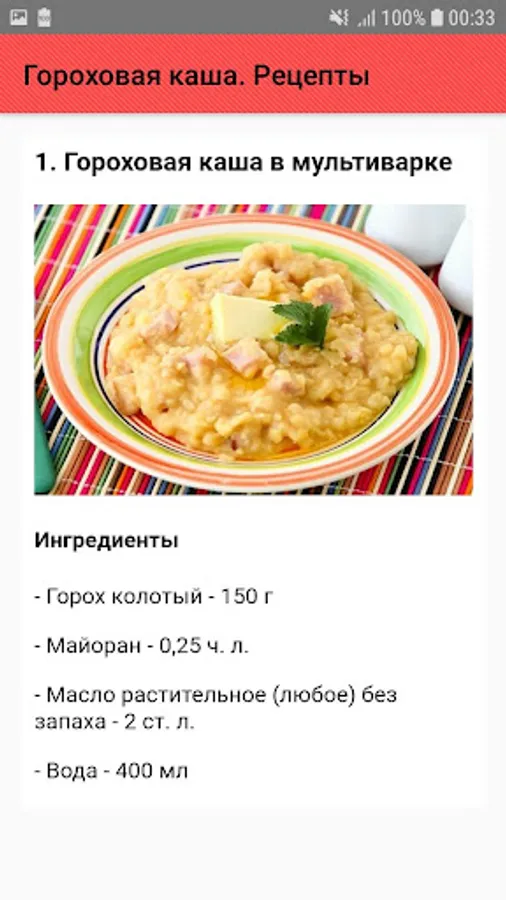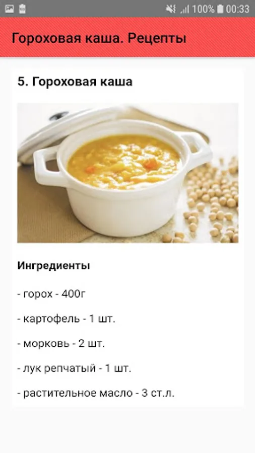 - Recipes pea porridge