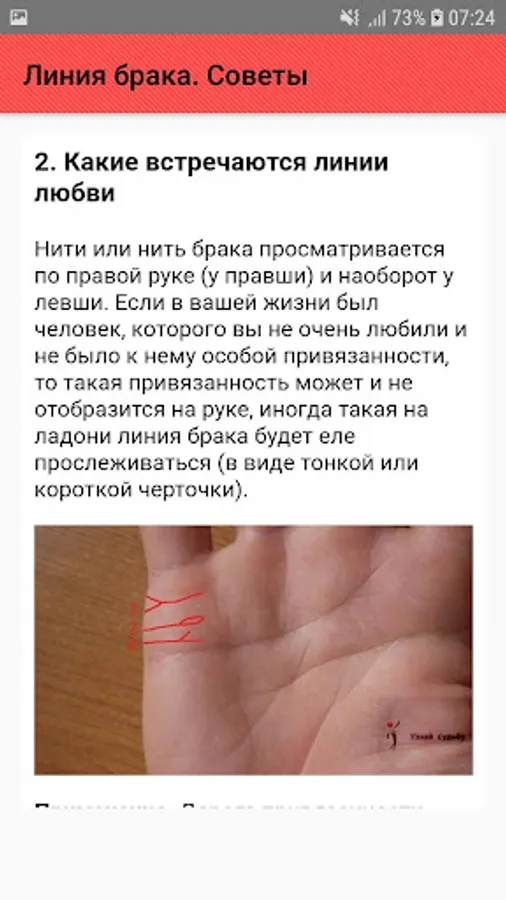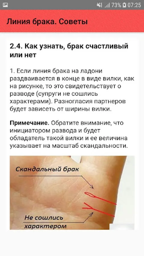 Information about the line of marriage. In palmistry, the line of marriage can answer important, interesting questions, to warn of possible dangers. On the hand, the marriage line can indicate the time of entry into the marital union.