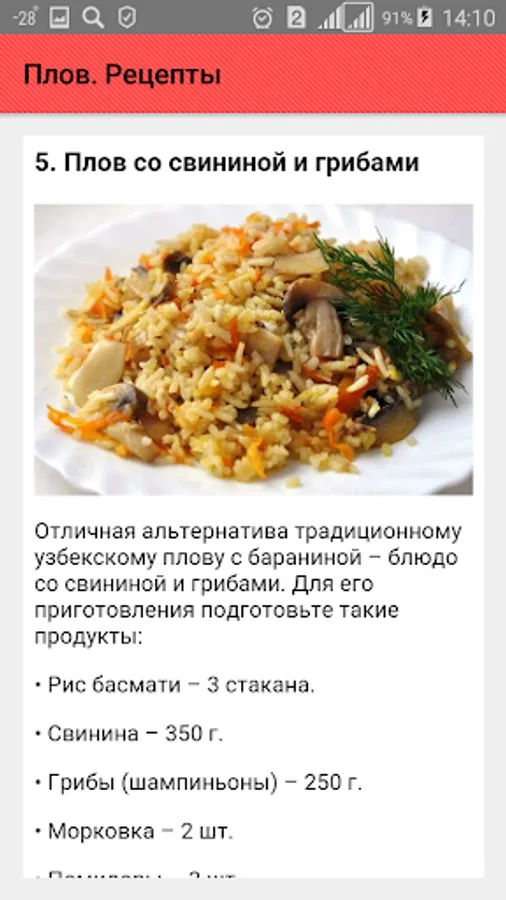 - Pilaf with pork and mushrooms