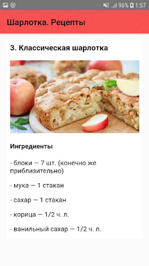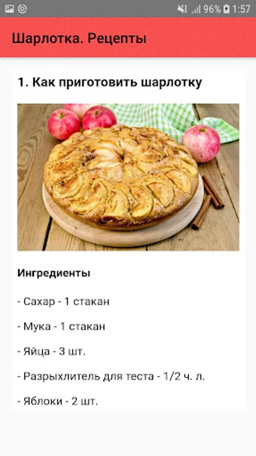 Charlotte. Charlotte is a popular dessert with the addition of apples, wholesome, tasty and easy to prepare.