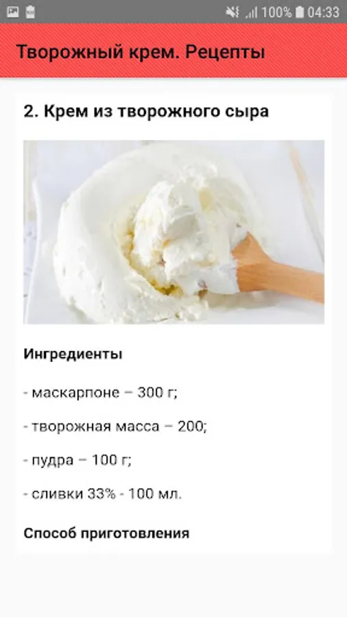 - Curd cream for sponge cake