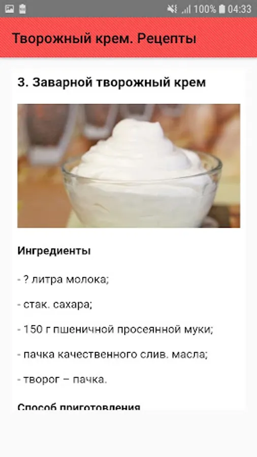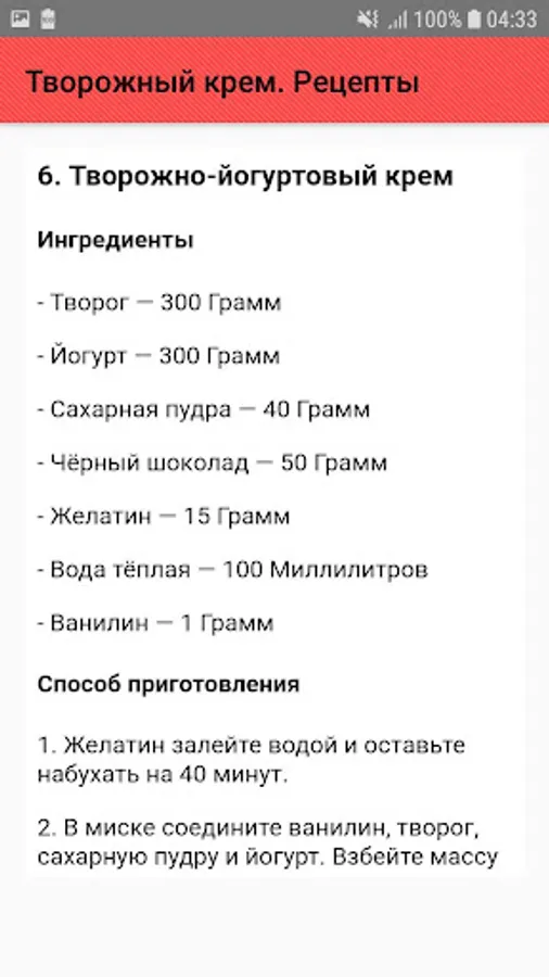 - Curd cream with gelatin