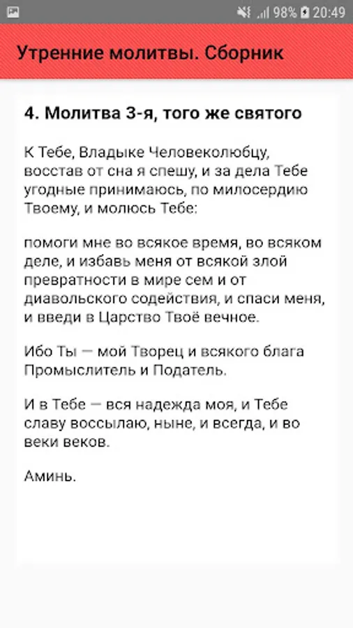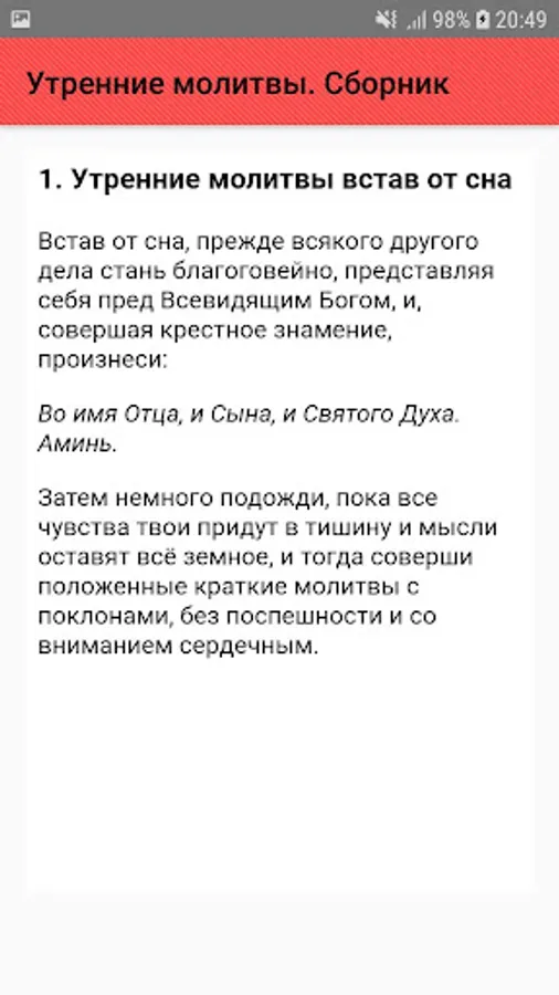 Morning Prayers are the first part of the obligatory daily regular prayer rule for a parishioner and clergyman of the Russian Orthodox Church, as well as some local churches historically associated with the Russian. Prayers read each morning. The texts of morning and evening prayers can be found in the Orthodox prayer book.
