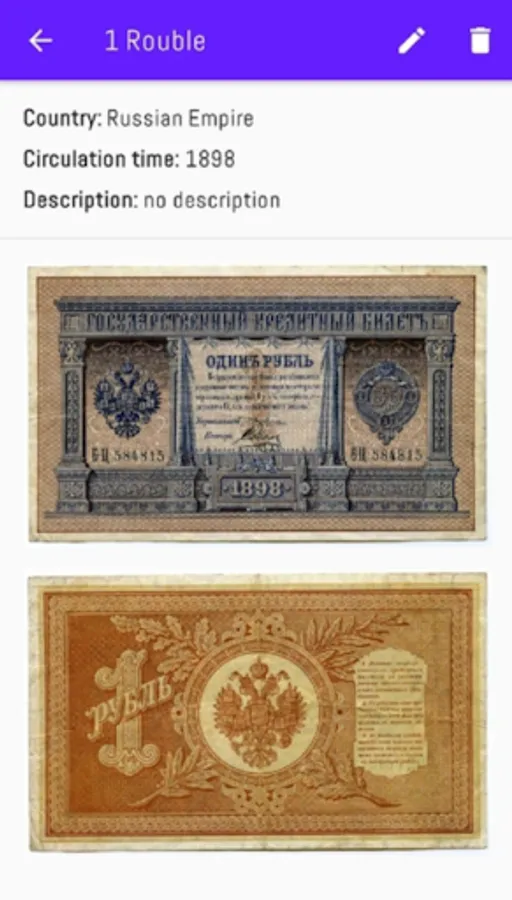 - Add a description, reverse and obverse images