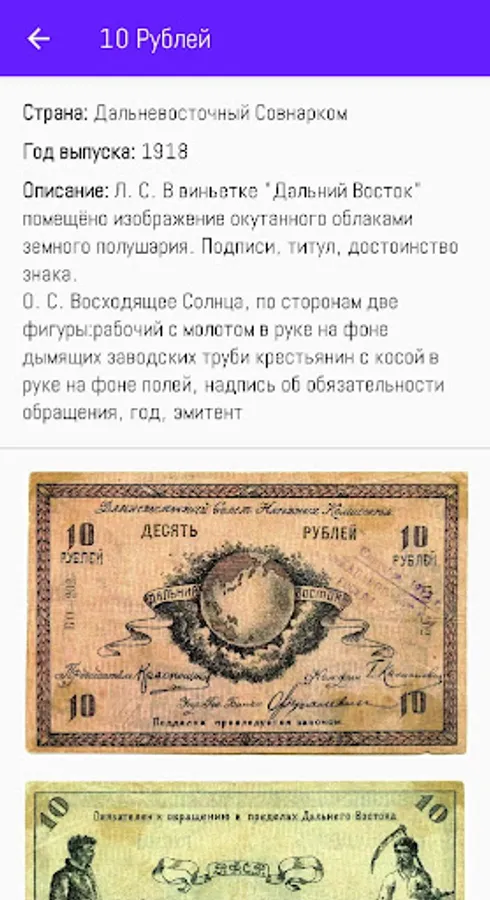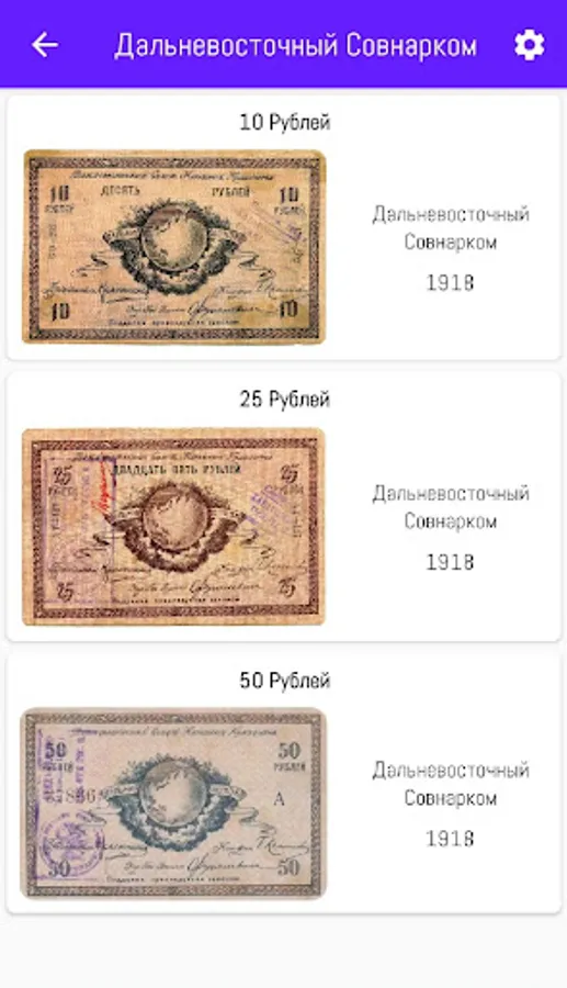 At the moment, 664 banknotes of the governments formed in the territory of the former Russian Empire have been cataloged.