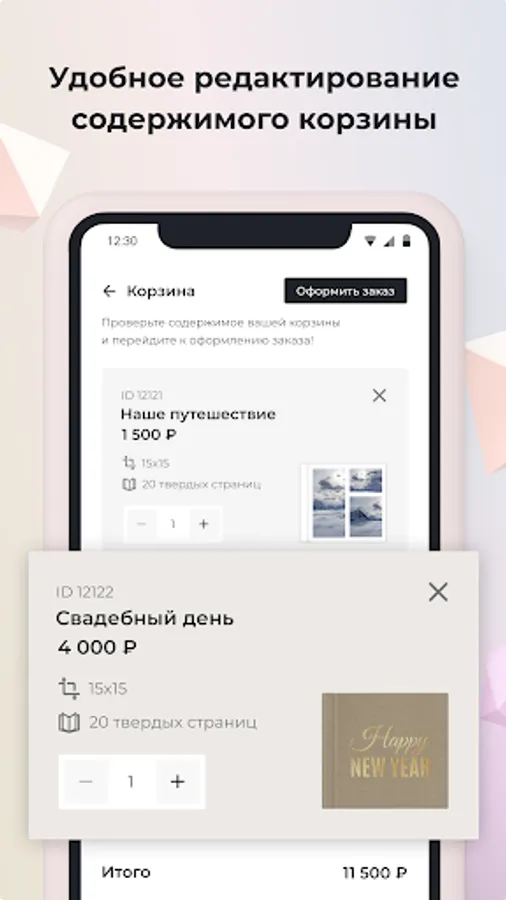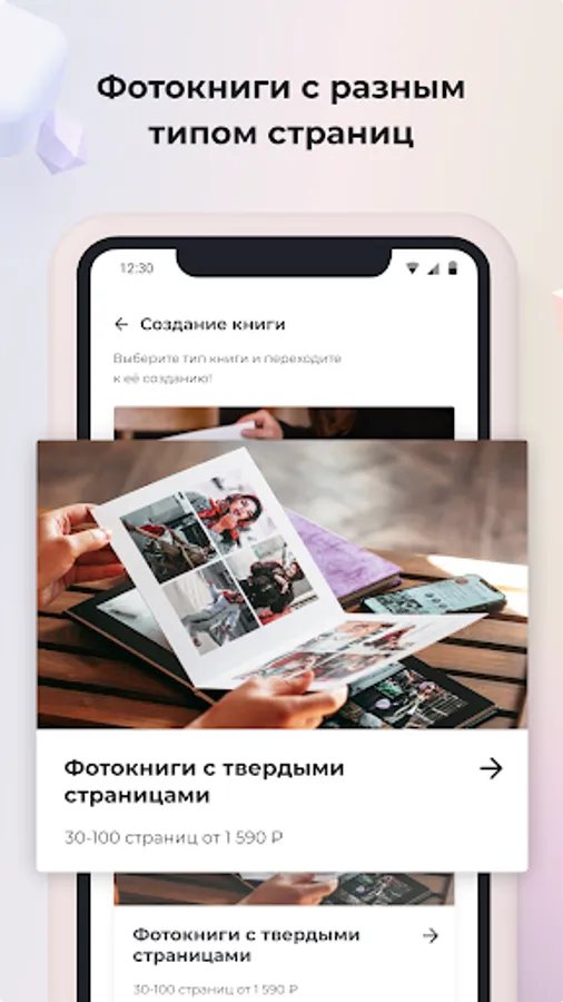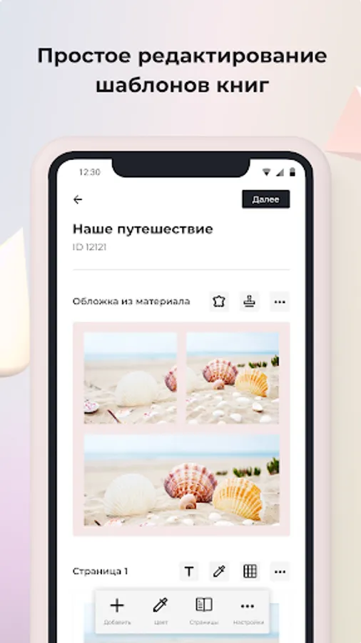 You choose all the details of the photobook yourself: size, type of paper, number of pages, material and cover design. In addition, you can save the layout and continue working on the book later.