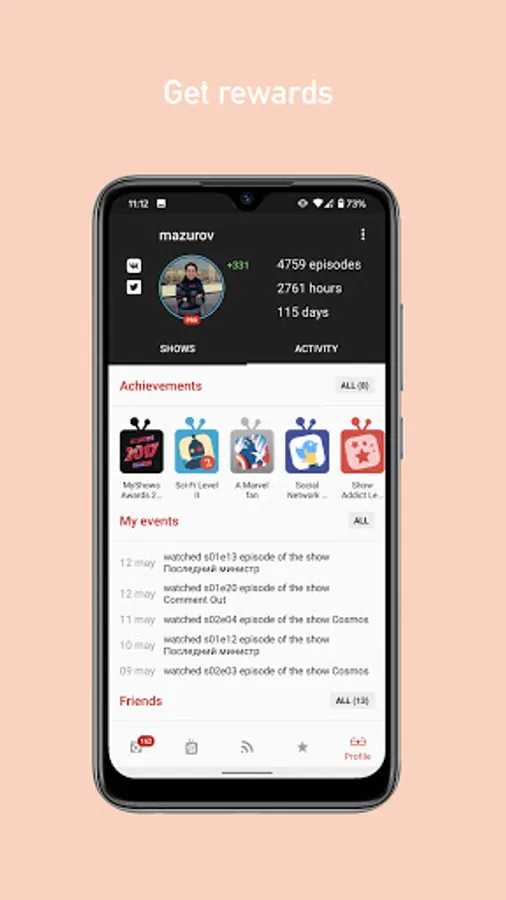 In MyShows you can create your own unique profile: