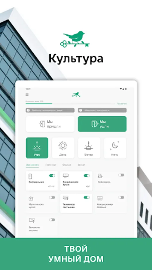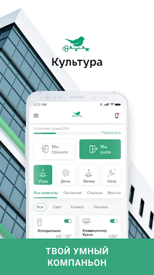 The Culture app is your personal control center for comfort, coziness and safety. Create your own intelligent space and automate routine processes.