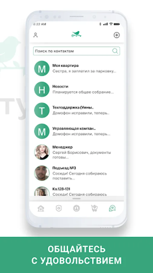- Keep in touch with the HOA: send applications online, participate in chats, receive news and receipts for housing and communal services;