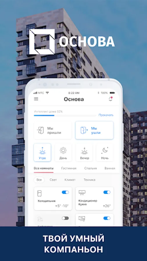 A smart home is a complex of solutions to improve the quality of life. Comfort consists of little things, and a smart home will take care of all the little things. The control center will allow you to use the services provided by the platform of the residential complex, interact with the management company, and also manage the devices that you purchase yourself. With it, you can connect to the building infrastructure and create special scenarios for your equipment.