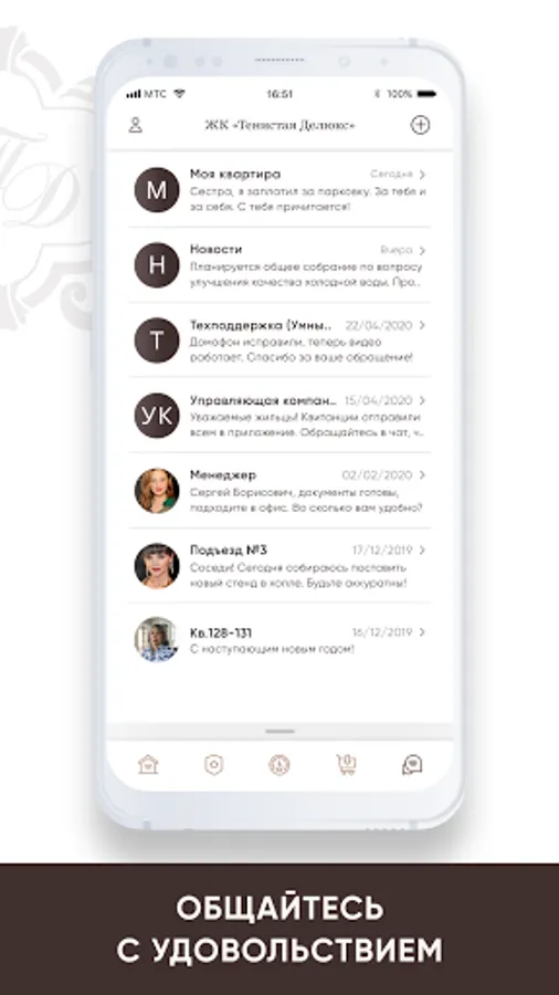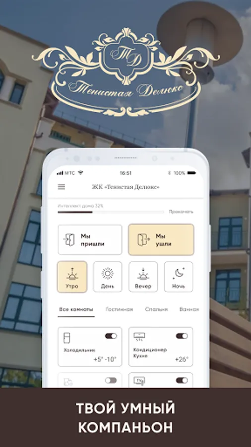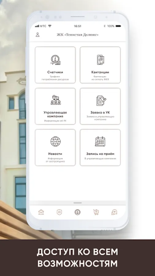 The mobile application of the smart residential complex "Shady Deluxe" allows residents to remotely control access to the territory, view video surveillance cameras, meter readings, conduct a dialogue with the management company and keep abreast of all the news of the complex!