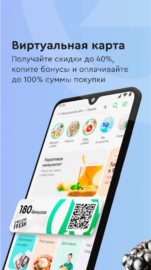 Issue a new card or upload plastic data to the app. Get discounts up to 40%, accumulate bonuses from each purchase and pay up to 100% of the check amount. 1 bonus = 1₽.