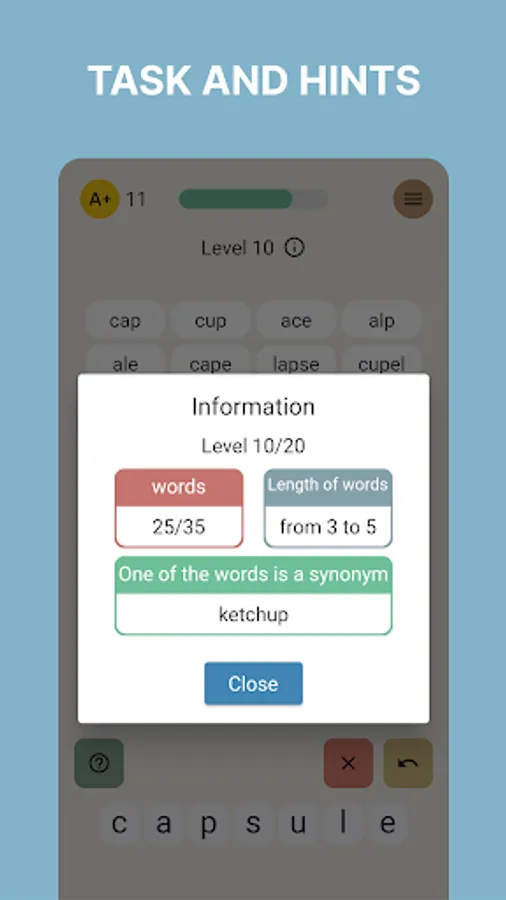Compose words, pass levels, increase the level of erudition, train your