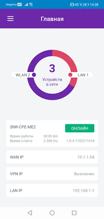 With the help of the application, the process of configuring and maintaining the SNR-CPE wireless router will become much easier and more convenient.