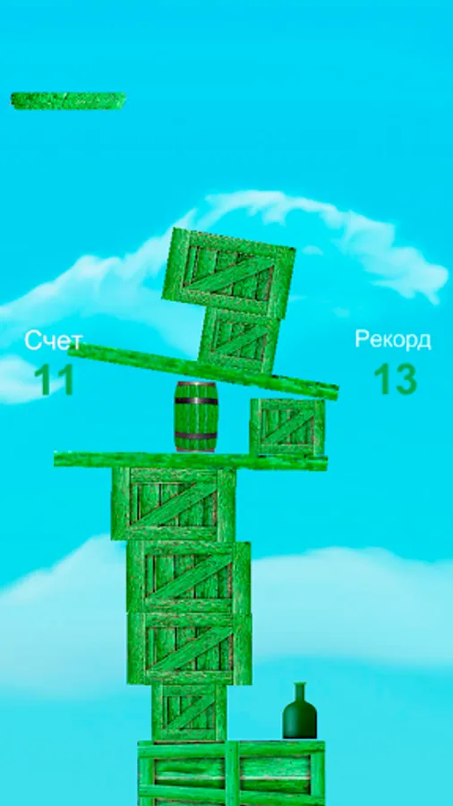During the construction process, the player's current score is displayed on the left, that is, how many items he managed to install, and on the right is the player's record for all time.
