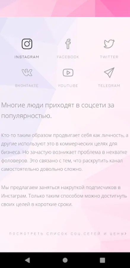 In Russia, this site is used mainly by the business segment. Therefore, many companies go there. The average check and solvency of people from this Internet resource is several times higher than the rest. However, advertising there is extremely expensive. And in order to develop in a local environment, it is necessary to achieve the attention of an influential audience for a very long time. To help bypass all these points, boosting likes will help, which will bring posts to the top and users will notice increased activity in the post and show interest themselves. Thanks to this, you do not have to make any special efforts, just entrust the business to us and we will do the job efficiently.