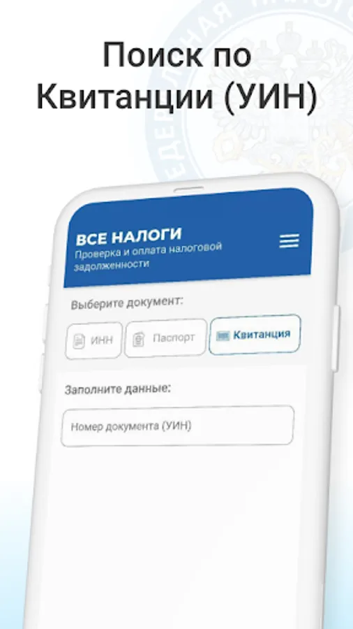 • check the tax debt on the TIN, passport or receipt (UIN);