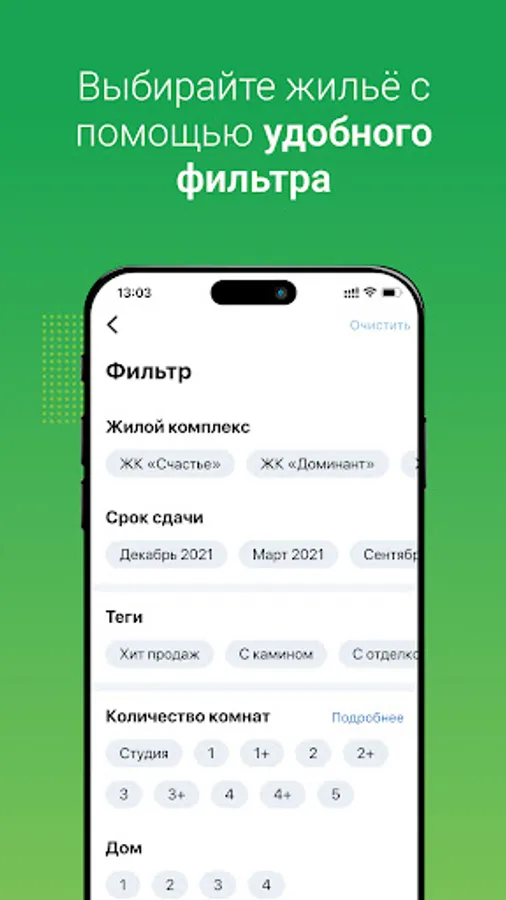 — get detailed information about residential complexes and apartments: layouts, prices, photos, infrastructure;