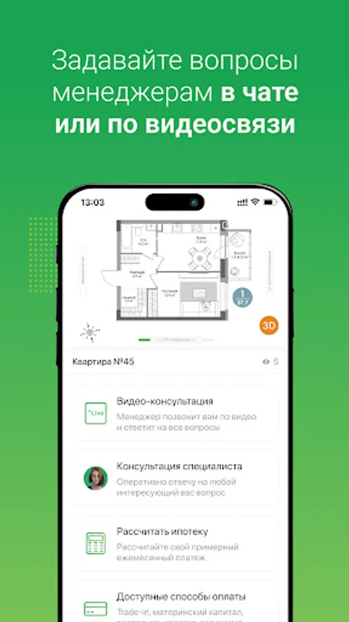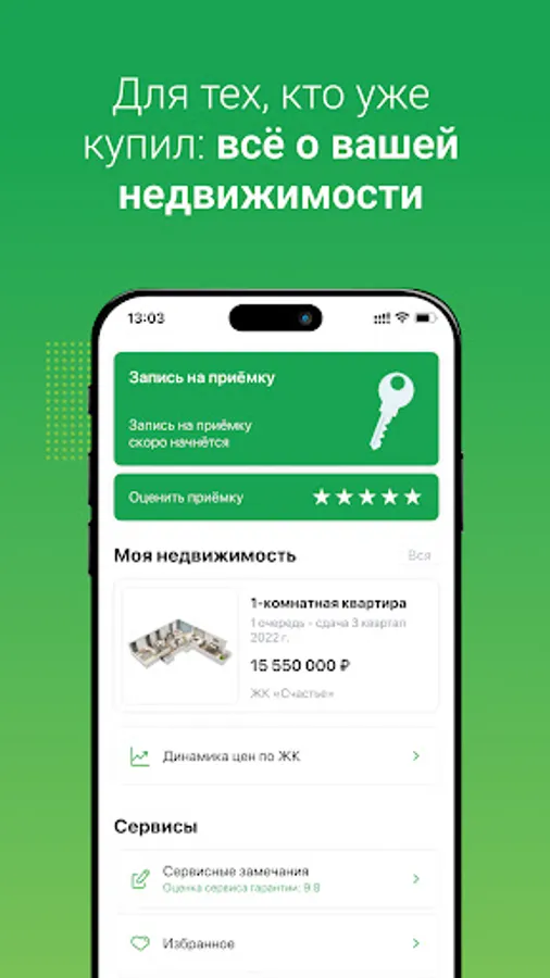 Choose and book your dream apartment without visiting the sales office directly from your phone! Follow the progress of construction, get the keys and live in coziness and comfort.