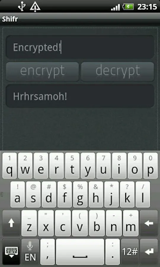 IMPORTANT: Your key must consist of the same locale as the encrypted text.