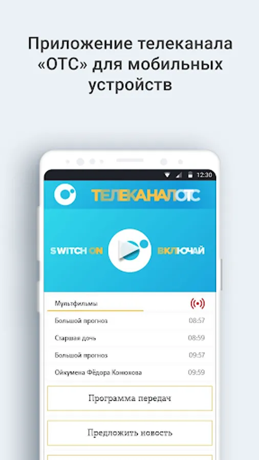 Russian regional TV channel with a 20-year history. One of the largest in Western Siberia. In addition to the head studio in Novosibirsk, it has branches and offices in the regional centers of the Novosibirsk region. OTS independently forms a round-the-clock broadcasting network. These are twenty copyright programs, live TV broadcasts of the most important events in the life of the region, documentaries of our own production, as well as feature films, including serials. "OTS" is also called "Live TV Channel". Several times a week the program includes sports matches and competitions, concerts, important official events. Live broadcasts are carried out using our own 10-camera HD-OB van. Throughout the year, the company's employees provide dozens of hours of live broadcasting for viewers. You can find a TV channel on the territory of the region in analog format, on the 21st button in cable networks, in television Internet services and applications, as well as from November 29, 2019, OTS daily shows and on the OTR channel from 6:00 to 9:00, and from 17:00 to 19:00.