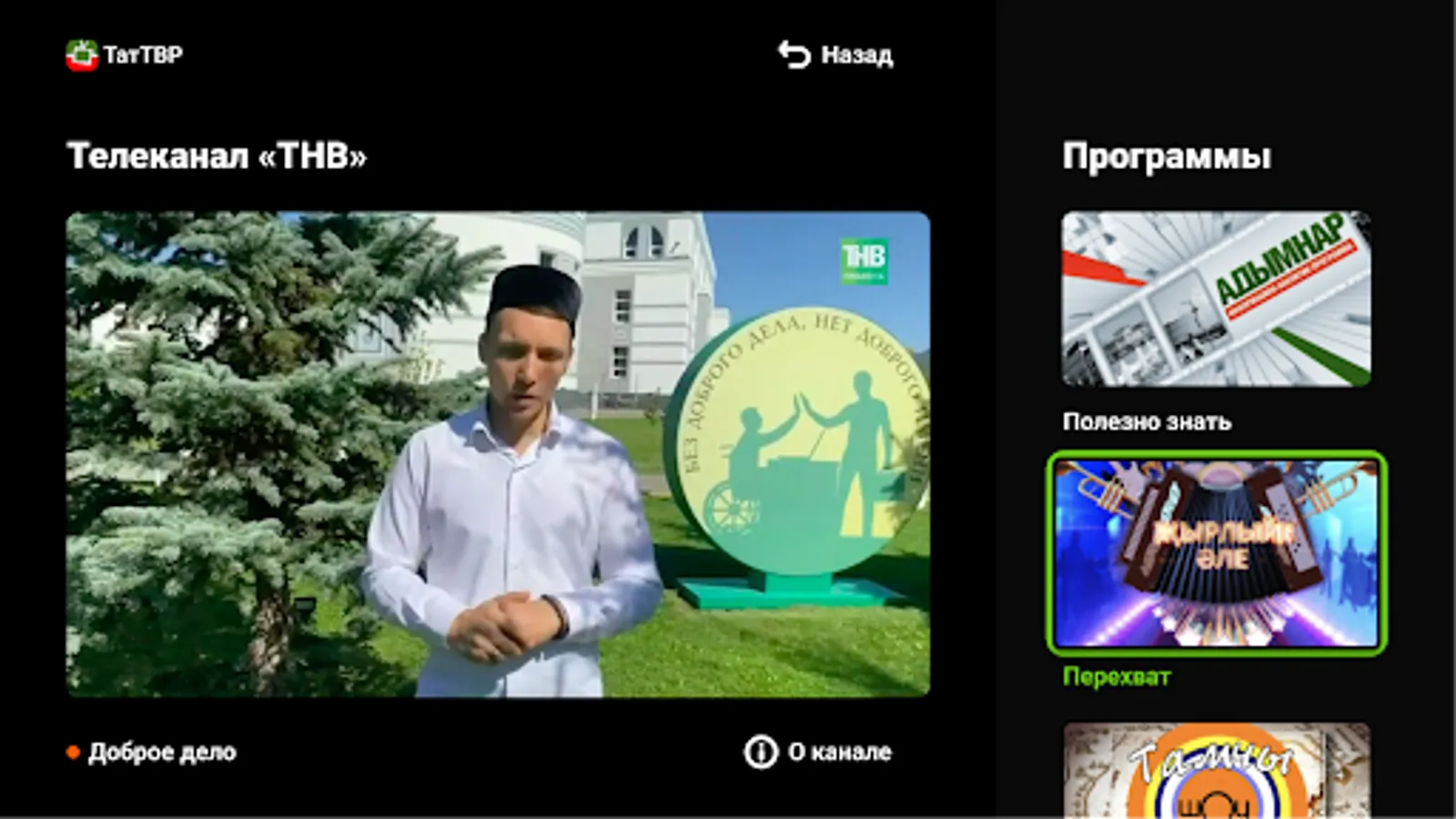 The TatTVR application includes the most popular TV channels and radio stations broadcasting on the territory of the Republic of Tatarstan, among them: