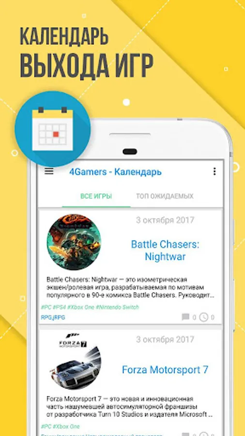 - Calendar of games exit. Adds the most anticipated in the favorites or just in your