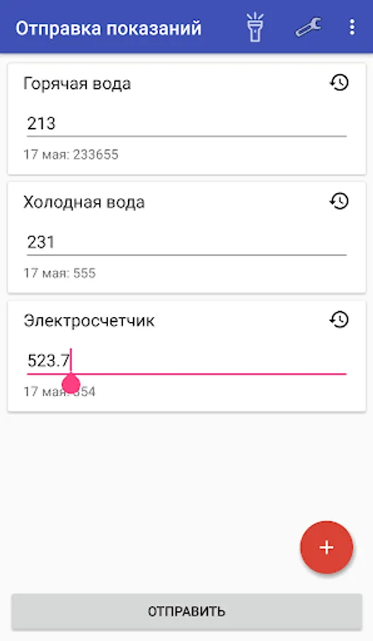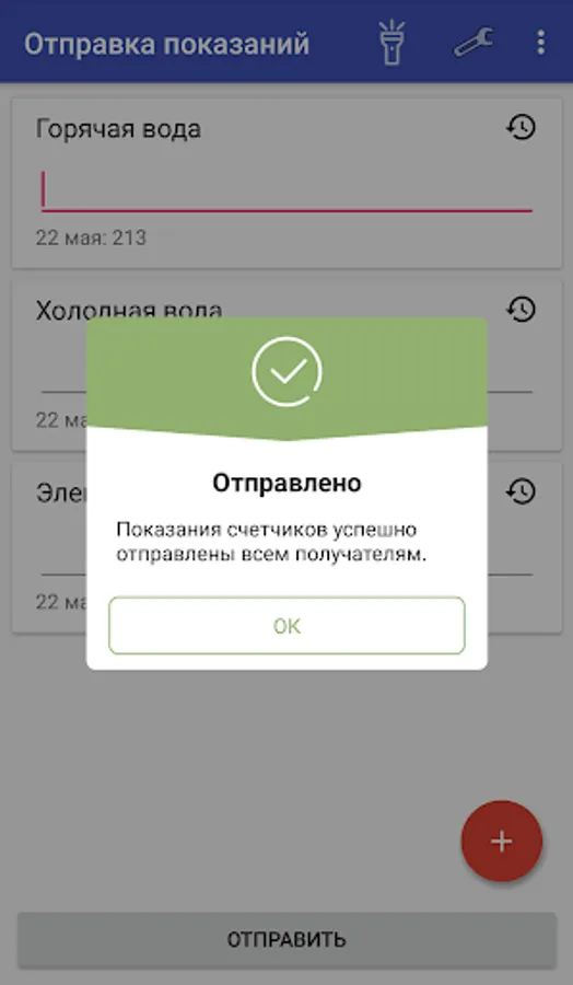 * Minimum action for sending monthly readings: enter the readings and press the "Send" button, and ALL!