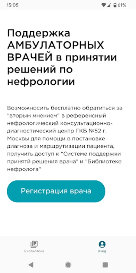 A service that allows both a person with kidney disease and a general practitioner to learn more about the features of kidney pathologies and apply for a second opinion at the Reference Nephrological Consultative and Diagnostic Center of City Clinical Hospital No. 52 in Moscow.