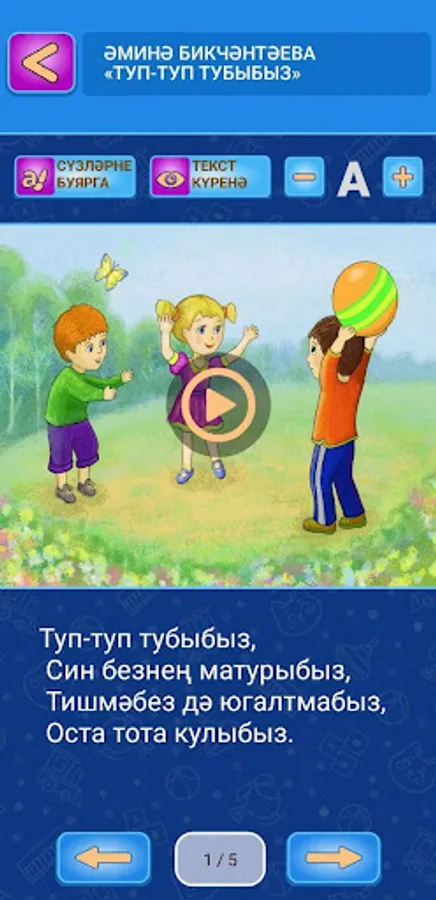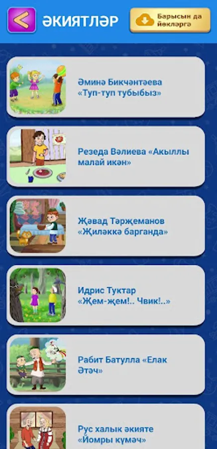 "Children's Digital Illustrated Voiced Library of Neftyashi" is a collection of illustrated and voiced in Tatar and Russian fairy tales and works for children by Tatar writers. Thanks to a rich set of interactive features (karaoke, tests, discussion, language selection, text on/off), the application will help your child to master the lexical minimum of the Tatar and Russian languages in a bright, exciting way and expand their horizons.