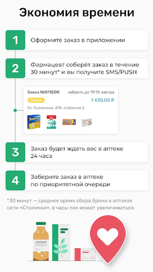 Order medicines at a single LOW PRICE in the application of the Stolichka social pharmacy network and pick them up in a priority queue in 30 minutes at the pharmacy!