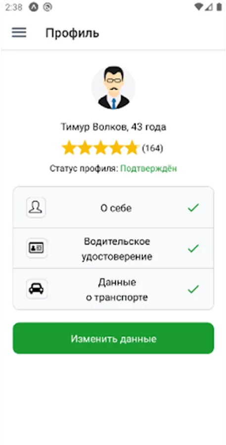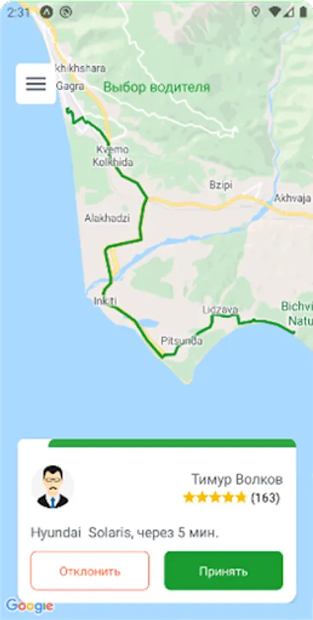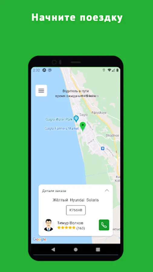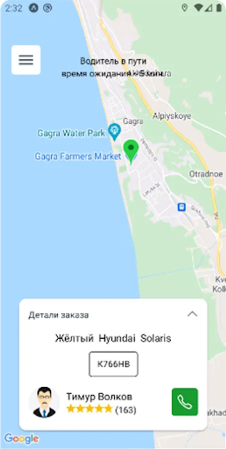 You can see the driver's name, rating, make, model, car number and number of completed orders