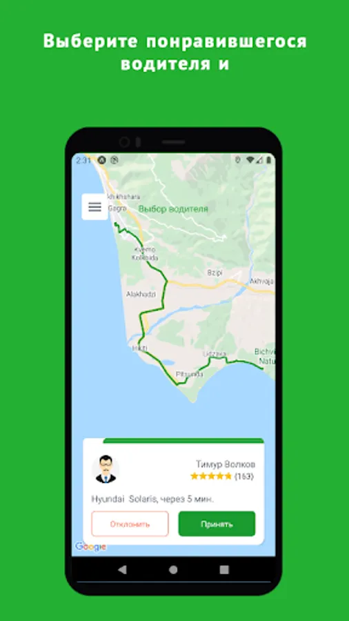 You yourself choose the driver that suits you based on the rating, feed rate or the price offered by the driver.
