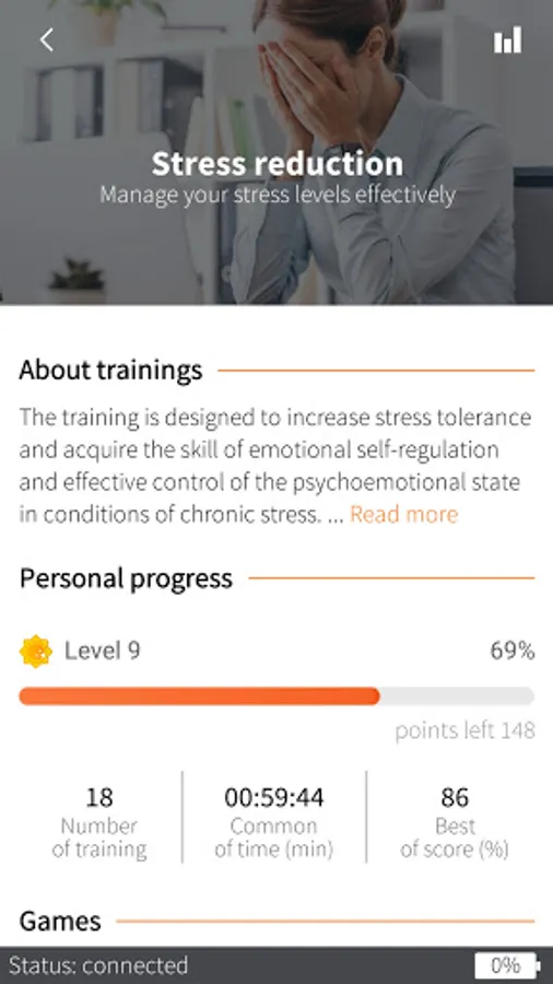 • visualize the level of brain activity and self-regulation trainings;