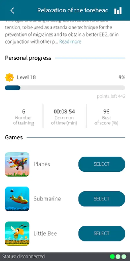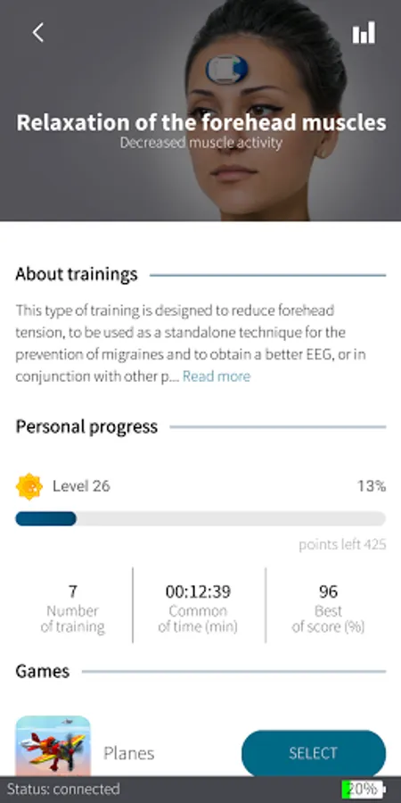 The application works with "Callibri" sensor that instantly evaluates muscle tone level (the EMG signal) and the app visualizes muscle activity in the form of a game situation.