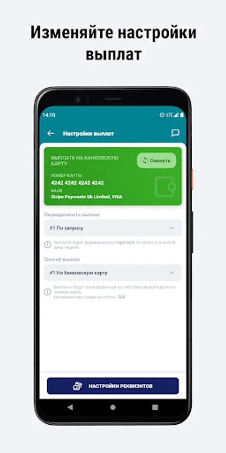 Allows you to manage your profile in the taxi fleet, control the balance, request payments, view fleet news, participate in an affiliate program and much more...