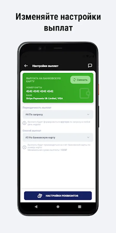 Allows you to manage your profile in the taxi fleet, control the balance, request payments, view fleet news, participate in an affiliate program and much more...