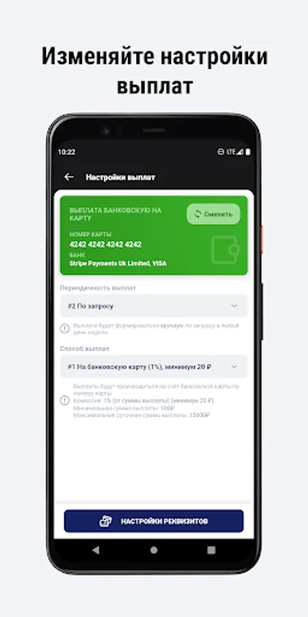 Allows you to manage your profile in the taxi fleet, control the balance, request payments, view fleet news, participate in an affiliate program and much more...