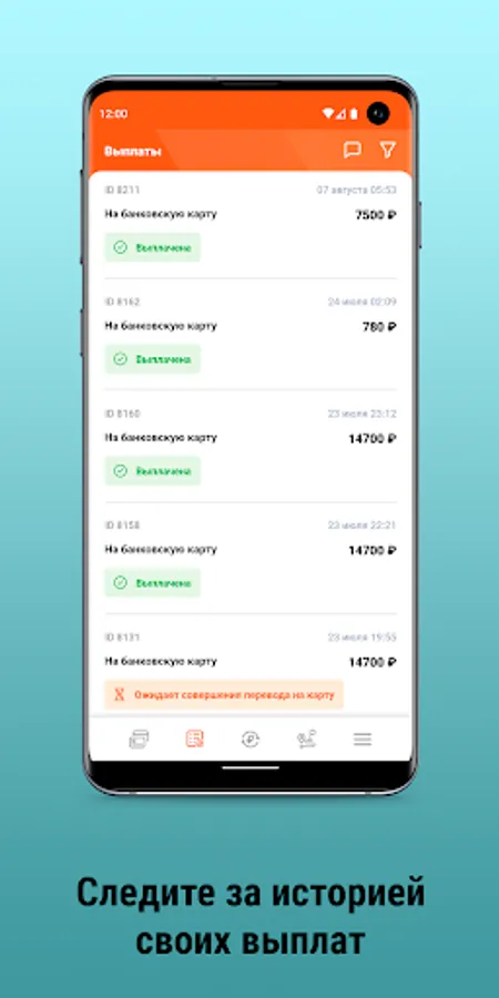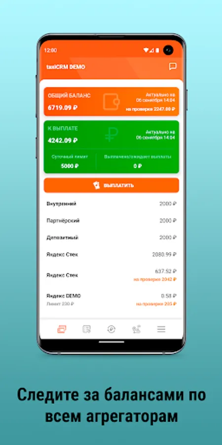 This application allows you to see your current total balance for all aggregators in your taxi fleet, independently choose the method and frequency of payments, indicate your payment details for them, as well as view their history and status.