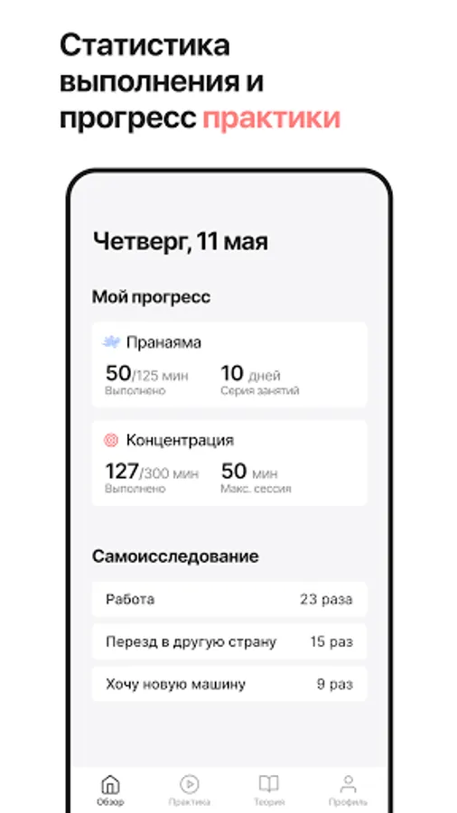 2. Each technique has an audio instruction. You adjust the number of approaches (cycles) for the exercise yourself. The time spent exercising is shown in your profile. When you master one technique (determined by the number of minutes), the next one will become available. You see your development process over the entire period of practice.